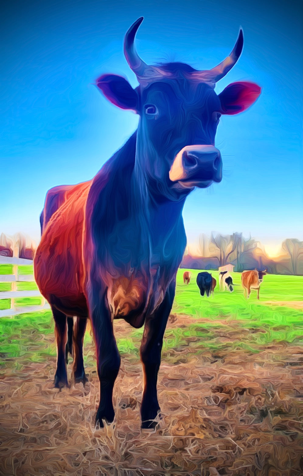 Nanda Sadhu was fated to be sold for veal when his namesake, pictured here, stepped in and begged for mercy on his behalf. He lives happily amongst Indraloka's herd with three other sweet calfs that were spared as well.