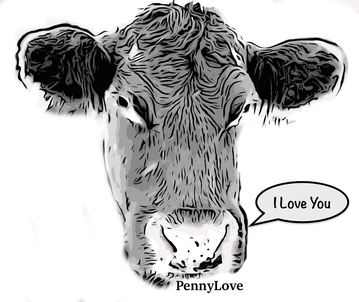 Rescuing PennyLove was a special honor, because her mother, Penny, was one of the first cows we ever rescued. PennyLove was a strong and proud matriarch. She loved the other cows, and was especially close to Gus and Nandi, as well as her son, Jimmy. We were thrilled to be able to rescue Jimmy with her and to provide an opportunity for this beautiful family to stay together. At the end of PennyLove's days, her arthritis often made it difficult for her to stand up from a seated position. She learned to call us with a specific moo, and would work with us patiently as we used a tool called an UpsiDaisy with the tractor to get her standing again.